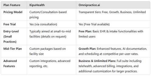 While KipuHealth typically offers custom pricing (with many details available upon consultation), Omnipractice.ai provides transparent tiered plans.