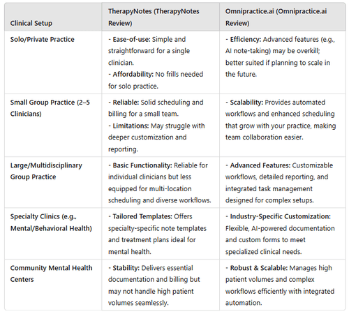 However, when it comes to scaling up—especially in large, multidisciplinary or high-volume settings—Omnipractice.ai clearly steps into the future with its customizable workflows, AI-powered documentation, and advanced scheduling features.